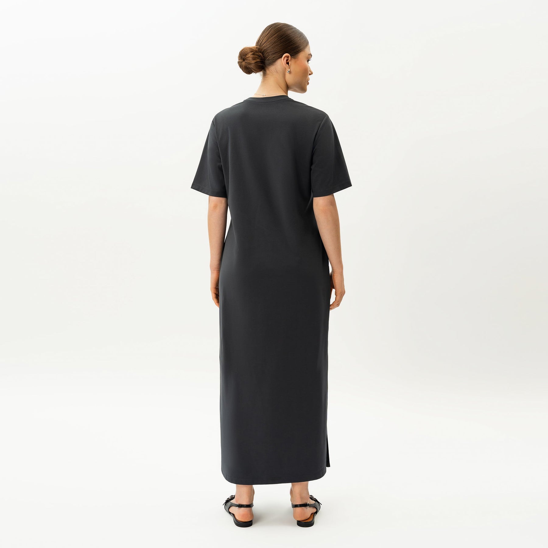 This is the dress you’ll reach for again and again. Made from a soft, breathable cotton blend, it has a relaxed fit with subtle shaping and side slits for easy movement. Designed to dress up or down, it’s a versatile staple made for comfort and ease.
